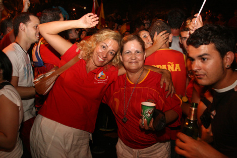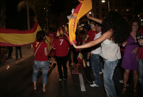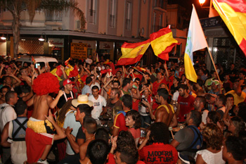 Las principales plazas y vías de los pueblos fueron escenario, asimismo, de improvisadas celebraciones en donde miles de aficionados ataviados con la camiseta roja de la selección nacional dieron rienda suelta a la euforia desatada a raíz del triunfo del conjunto de Luis Aragonés por 1-0 sobre Alemania. Incluso, en localidades como Puerto del Carmen o Playa Blanca, con casi más población extranjera que nacional, también cientos de personas se echaron a la calle para celebrar esta gran victoria ante la mirada envidiosa de alemanes o italianos, verdugos de España en esta Eurocopa.