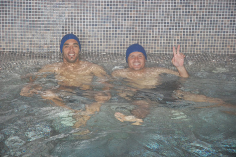 La primera plantilla de la Unión Deportiva Lanzarote cambió su rutina semanal y en la jornada de este lunes el entrenamiento de recuperación se trasladó a la Talasoterapia Costa Calero. Una sesión que sirvió para relajar músculos y recargas pilas de cara al importante choque del próximo domingo ante el Universidad de Las Palmas.