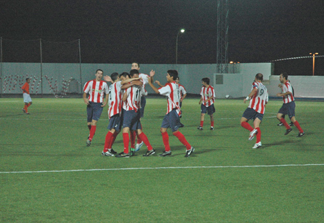 El primer gol para los locales no tardaría en llegar. Fue en el minuto 14 cuando Toñito le ganó la espalda a la defensa del Atlético Tiense y, ante el guardamenta Roberto, le batió por bajo. El tanto reafirmó a los locales en sus posibilidades y, pasada la media hora de juego, llegó el segundo gol del conjunto de Ajey, un trallazo de Caco tras asistencia de Toñito.