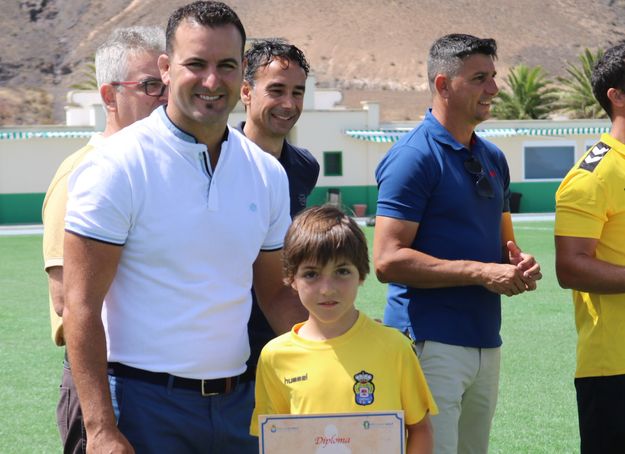 En el acto han participado además el concejal de Deportes de Yaiza, Ángel Lago, y el primer teniente de alcalde sureño, Ángel Domínguez, entre otros responsables municipales, y por parte de la Escuela UDLP también su director de Desarrollo, Yeray Sánchez. Todos ellos han procedido posteriormente a hacer entrega de los diplomas a los pequeños para, a continuación, hacerse la foto de familia.