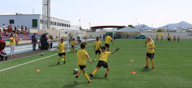 La fiesta ha comenzado con una exhibición en la que niños y niñas han demostrado ante la atenta mirada de familiares, entrenadores, responsables de la escuela y autoridades las habilidades adquiridas en cuestiones técnicas, tácticas, de psicomotricidad y competición durante estos cinco días en los que han dedicado jornadas de más de cuatro horas diarias a su deporte favorito y que han incluido también entrenamiento específico para porteros. Toni Robaina, exfutbolista profesional que militó en las filas del UD Las Palmas, Leandro Santana, Fran Sánchez y Santi Lemus han sido los encargados durante estos días de aplicar la metodología propia de la Escuela de la UD Las Palmas en Yaiza.