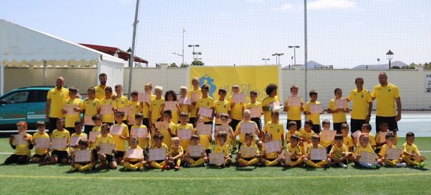 El Campo de Fútbol Municipal de Yaiza acogió este sábado por la mañana la clausura del Campus UD Las Palmas que se ha venido celebrando con éxito a lo largo de toda esta semana con la participación de 55 niños y jóvenes de edades comprendidas entre 5 y 14 años.