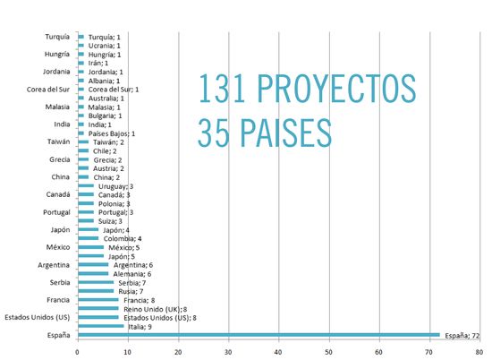 Los equipos participantes proceden mayoritariamente de España, con 72 propuestas, seguidos de Italia con 9 y Reino Unido, EEUU y Francia con 8 proyectos presentados, respectivamente. Rusia y Serbia les siguen con 7, y Argentina y Alemania van detrás con 6 candidaturas. Han presentado proyectos también de otras regiones como Turquía, Ucrania, Hungría, Irán, Jordanía, Albania, Corea del Sur, Australia, Malasia, Bulgaria, India, Países Bajos, Taiwan, Chile, Grecia, Austria, China, Uruguay, Canadá, Polonia, Suiza, Japón, Colombia y Portugal.