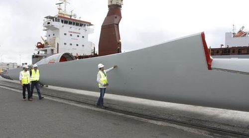 Este miércoles, 15 de junio, se desembarcaron en Puerto de Los Mármoles los dos aerogeneradores de 96 metros que se van a instalar en la Central de Desalación Díaz Rijo en Punta de Los Vientos. Está previsto que estén en funcionamiento en el primer trimestre de 2017 y le permitirá ingresar al Consorcio del Agua de Lanzarote en forma de canon que abonaría Canal Gestión Lanzarote, en torno a 600.000 euros anuales, por el ahorro de energía.