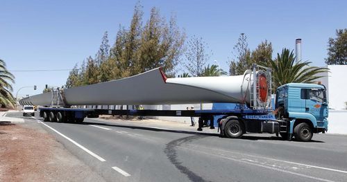 Desde este martes, 5 de julio, y este miércoles, día 6, se está procediendo al traslado de los dos aerogeneradores de 96 metros que se van a instalar en la Central de Desalación Díaz Rijo en Punta de Los Vientos.
