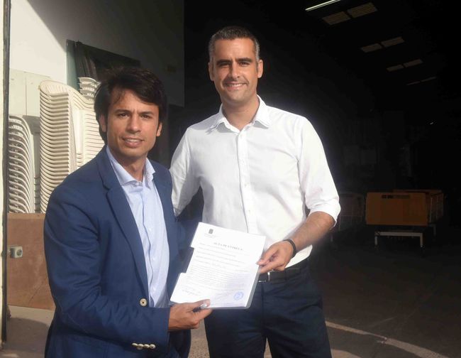 El alcalde de San Bartolomé, Alexis Tejera, acompañado por el consejero de bienestar social del Cabildo de Lanzarote, Marcos Bergaz, se acercaron juntos hasta la nave del Cabildo cediendo in situ a los representantes municipales 3 camas eléctricas.