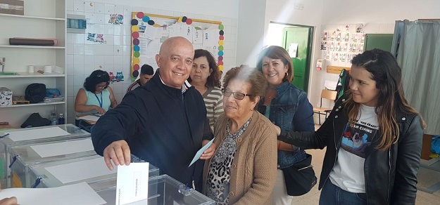 Los candidatos del Partido Popular (PP) también han acudido a votar temprano y convencidos de que va a haber una gran participación. Uno de los primeros en hacerlo ha sido el alcalde de Tías, Pancho Hernández, que ha acudido a ejercer su derecho en compañía de su familia, con su madre y con su mujer como la mejor de las compañías.