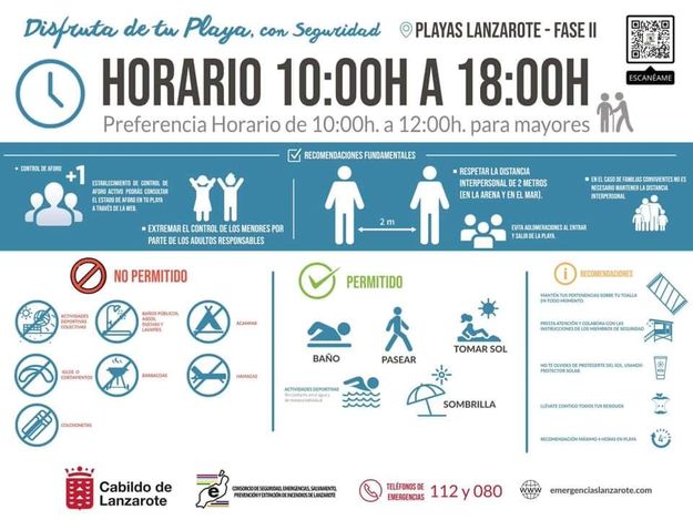 El Ayuntamiento de Arrecife recuerda, que común acuerdo en todos los municipios de Lanzarote, desde este lunes 25, y mientras sigan las desescaladas, los baños en las playas del litoral conejero están permitidos entre las 10 y 18 horas. Por seguridad, y durante toda la alerta, los aseos de la playa del Reducto, donde se han realizado importantes mejoras en estos últimos meses, permanecerán cerrados al público.