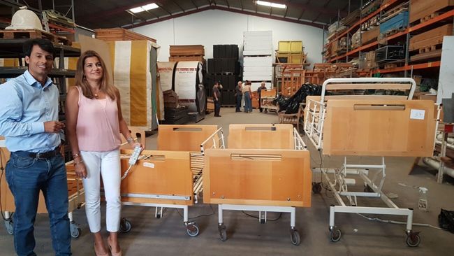 La concejal de Servicio Sociales, Migración e Igualdad, María Jesús Tovar, ha recibido en la mañana de este martes, de mano del consejero de Bienestar Social del Cabildo de Lanzarote, Marcos Bergaz, 9 unidades de estas camas especiales articuladas, de un total de 17 que aportará la Primera Institución insular de Lanzarote.