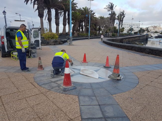 La rosa de los vientos, esculpida en granito sobre el pavimento, estaba deteriorada y ha sido restaurada y repuesta desde los últimos días de julio y primeros de agosto, por los operarios del Área de Vías y Obras del Ayuntamiento de Arrecife, bajo la dirección del concejal Roberto Vicente Herbón. Algunas de estas piezas estaban sueltas desde hacía bastante tiempo, significando un riesgo para los transeúntes del paseo, y otras estaban deterioradas y rotas. La rosa de los vientos, idea de Manrique, está incrustada en el paseo del Charco y ya luce su aspecto original.