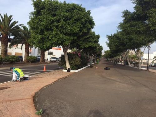 Desde este lunes, varios operarios del Ayuntamiento de Arrecife y personal de convenio, acondicionan y embellecen distintas zonas de parques y paterres en la vía medular del municipio, desde la altura de la cofradía hasta la rotonda de los juzgados.
