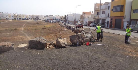 El Ayuntamiento de Arrecife ha procedido a la retirada de casi 13.000 kilos de hierbas (6.700 kilos en una primera intervención y 6.080 en una segunda), aulagas, utensilios y desperdicios en general de los márgenes de las calles Temisa, Málaga y alrededores (Altavista y Los Geranios).