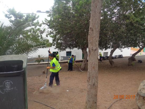 Además, se ha procedido a una limpieza y poda de palmeras en el Parque de Los Pinos (Titerroy), retirándose la pinocha y malas hierbas acumuladas.