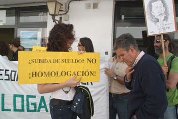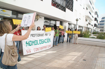 Varias decenas de docentes secundaron este miércoles en Arrecife la concentración “por una homologación sin contrapartidas”, frente a los varios centenares que se dieron cita la pasada vez.