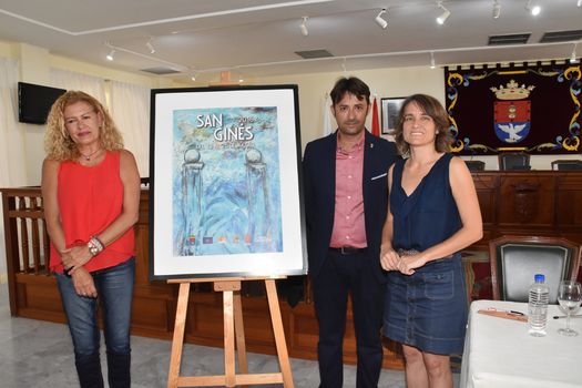 La alcaldesa de Arrecife, Eva de Anta, fue la encargada de presentar y felicitar a Dominga Santana, autora del cartel anunciador de las Fiestas de San Ginés 2016, “La puerta azul”. La obra, realizada en técnica mixta con pintura acrílica, cera y carboncillo sobre cartón pluma, fue elegida por un jurado de entre nueve participantes que se ajustaron a las bases del concurso.