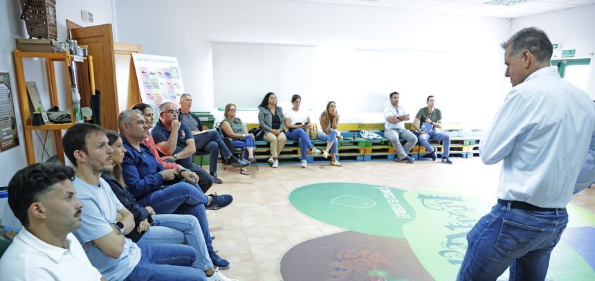 El consejero de Residuos del Cabildo de Lanzarote, Domingo Cejas, reunió a los concejales responsables del área de los ayuntamientos de la Isla y a sus equipos técnicos en una visita institucional al Complejo Ambiental de Zonzamas realizada con el objetivo de exponer de manera directa y sobre el terreno la situación actual de las instalaciones y del servicio insular de residuos.