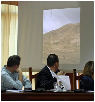 - El presidente mostró fotografías que "acreditan que existen en la actualidad hasta 3 tendidos eléctricos con torretas que atraviesan el municipio de Yaiza"