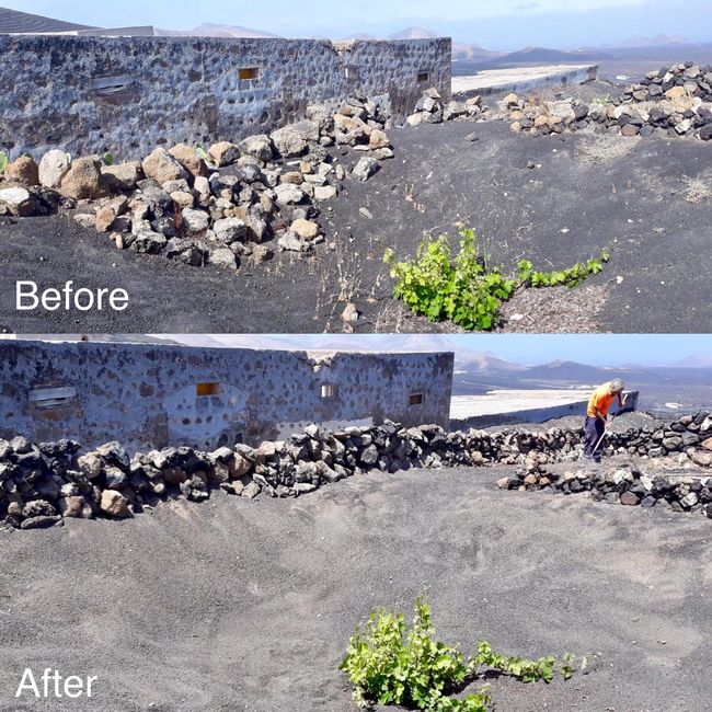 La cuadrilla restaura los hoyos y muretes que protegen a las vides, poda las parras abandonadas y elimina rastrojos y malas hierbas. “No sólo damos nuevas oportunidades a estos terrenos, sino que lo hacemos dando más oportunidades a personas que las necesitan”, concluyó Corujo.