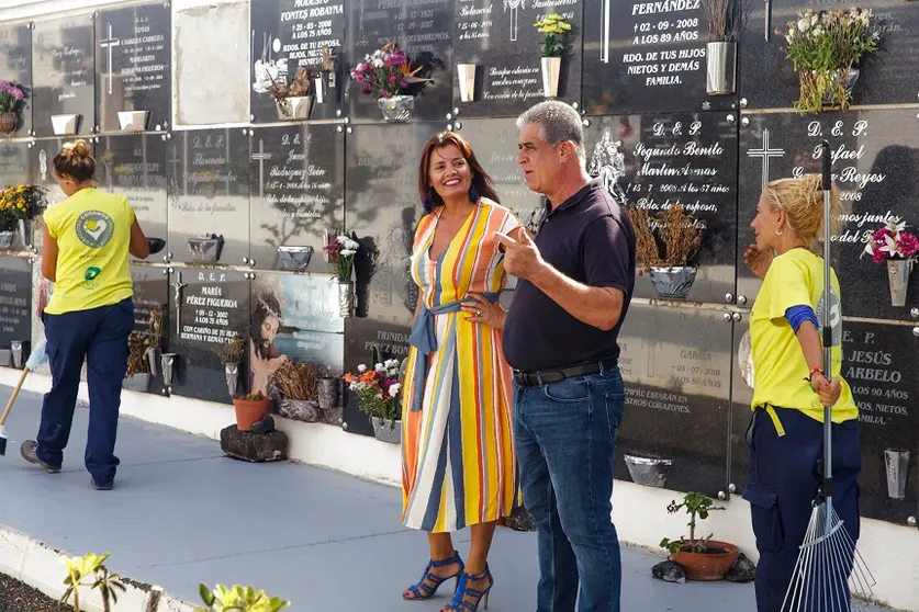 Un día especial en el que miles de personas visitarán durante el próximo día previo al día de los difuntos y hasta el miércoles 1 de noviembre. La alcaldesa de Teguise, Olivia Duque, destaca este lunes que realizó el pasado viernes una ronda de visitas por las principales obras y proyectos que están en marcha en varios puntos del municipio, acompañada por Eugenio Robayna, que hicieron la ya tradicional parada en el Cementerio Nuestra Señora de Las Nieves, en la Villa de Teguise, donde se ha estado trabajando a conciencia para que luzca su mejor cara.