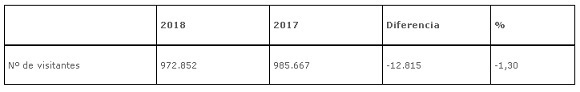 Desde la dirección de la entidad pública destacan este martes en nota de prensa trasladada a este diario que los Centros recibieron 36.425 visitantes menos que en abril de 2017 hasta alcanzar un total de 234.595, lo que supone un descenso del 13,44%. De igual modo, los ingresos por la venta de entradas cayeron un 4,65% o, lo que es lo mismo, en 75.706,58 euros. El impacto de las vacaciones de Semana Santa, que en 2017 se celebró en el mes de referencia, explica estas cifras.