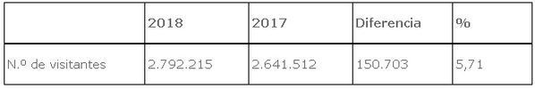 L dirección de la Empresa pública explica este miércoles en un comunicado de prensa que las tiendas de los Centros facturaron el pasado mes por valor de 288.741,99 euros, un 18,80% más con respecto a noviembre de 2017, mientras que los ingresos del servicio de restauración crecieron un 17,83% hasta alcanzar 540.246,74 euros.