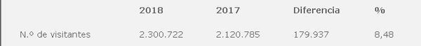 Los Centros recibieron 1.709 visitantes más que en septiembre de 2017 hasta un total de 245.986, lo que supone un incremento del 0,70%. Los ingresos por la venta de entradas, por su parte, registraron un descenso de apenas el 0,78% hasta llegar a un total de 1.639.088,93 euros.