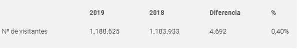 Los Centros recibieron 192.110 visitantes durante el pasado mes, 17.941 menos que en mayo de 2018, lo que se traduce en un descenso del 8,54% con respecto al mismo mes del pasado año. En consecuencia, los ingresos por la venta de entradas registraron una caída del 8,72%% hasta llegar a un total de 1.276.343,12 euros.