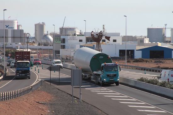 Estos días ya ha comenzado el traslado de los cuatro aerogeneradores E-70 que conformarán el Parque Teguise I y que llegaron a la Isla a principios de este mes al Muelle de Los Mármoles. El Consorcio insular del Agua en Lanzarote apunta este miércoles en un comunicado que los nuevos aerogeneradores tienen una potencia de 9,2 MW. El traslado a la zona denominada El Monte, la ladera noroeste de la Montaña de Zonzamas, es muy aparatoso y necesita de un dispositivo de seguridad especial porque las piezas que conforman el parque son de gran envergadura. Este proyecto lo desarrolla el Consorcio del Agua de Lanzarote, que preside, Pedro San Ginés.