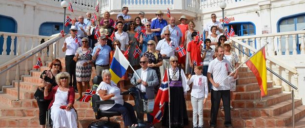 Los noruegos celebran el 17 de mayo el día de su Fiesta Nacional, que coincide con el aniversario de su Constitución, que declaró el país como una nación independiente en conmemoración de la firma de la Constitución en esa fecha de 1814. En Lanzarote los visitantes noruegos tienen uno de los destinos de inviernos más singulares y muchos de ellos, tras conocer la Isla en sus vacaciones, deciden establecer aquí su residencia. Un elevado porcentaje de estos residentes noruegos, prácticamente el 80%, eligen el municipio de Tías para vivir, mientras que la gran mayoría de los turistas procedentes del país nórdico también eligen Puerto del Carmen para pasar sus vacaciones, un hecho que resaltó el alcalde de Tías, Pancho Hernández durante su intervención en el acto celebrado en los locales donde la Comunidad Noruega tiene su sede, con el paseo de las banderas, la española y canaria, junto con la de Noruega, cuyos colores rojo, blanco y azul simbolizan la libertad