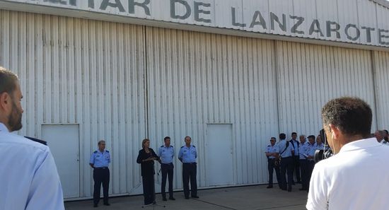 En mitad de un fuerte y lógico despliegue de seguridad y tras recibir la bienvenida de las autoridades locales, Cospedal ha visitado este 20 de julio, acompañada del jefe de Estado Mayor del Ejército del Aire, general del Aire Javier Salto Martínez-Avial, el Aeródromo Militar de Lanzarote, última parada tras su periplo por el Archipiélago, donde este miércoles visitó Fuerteventura y Tenerife y, este jueves, Gran Canaria y Lanzarote. La ministra ha calificado de "trascendental y muy emotiva" la visita oficial que ha realizado estos días a todas las unidades de las Fuerzas Armadas en Canarias.