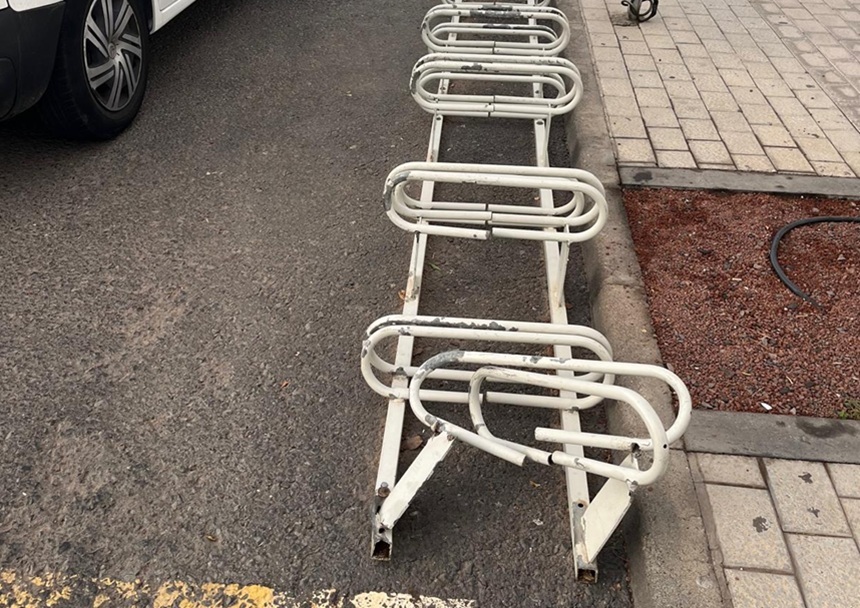 Un ciudadano ha denunciado este lunes en un comunicado que ha emitido a este medio de comunicación el mal estado en el que se encuentra el aparcabicicletas situado en los exteriores del Ayuntamiento de Arrecife.
