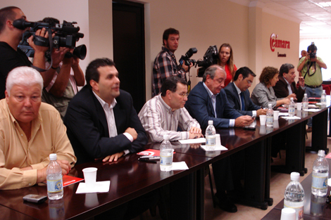 La reunión entre Gobierno canario, Ayuntamiento de Arrecife y empresarios de la Cámara de Comercio de Lanzarote precedió a la rueda de prensa.