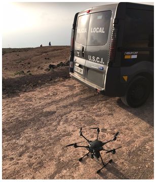 El pasado viernes, 9 de junio, la Policía Local de Teguise pidió la colaboración del artefacto en la búsqueda y rescate de una persona que había sufrido un accidente mientras pilotaba un parapente sobre Risco de Famara. Una vez facilitadas las coordenadas que había aportado la propia víctima desde su móvil que sufría de fractura abierta en una pierna y estaba inmovilizada, el agente instructor de drones puso en marcha el artefacto.