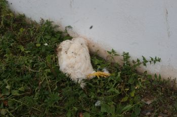 El cementerio de San Román, en Arrecife, podría volver a ser objeto de extraños rituales en los que los animales vuelven a ser tristemente los protagonistas. Este miércoles Crónicas se acercó hasta el camposanto y pudo observar la presencia de dos aves, una en un lateral y otra en la trasera del camposanto, que protagonizaban un espectáculo macabro.