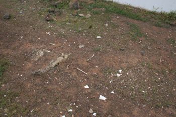 El otro ave, un gallo al que le habían cortado la cabeza recientemente, aparecía solitario en la parte de atrás. Además, se pudieron divisar gran cantidad de huesos de animal,restos de éstos semienterrados y dos pequeños cercos de piedra en un lateral, uno de ellos al que le habían realizado una pequeña excavación, como si alguien pretendiese introducir algo. También aparecían dos pequeñas tumbas, una con una cruz y otra con flores, que parecían de animales, en el otro lateral.