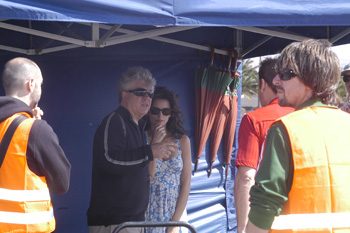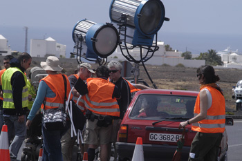 Desde tempranas horas la rotonda de la Fundación César Manrique se convirtió en un ir y venir de técnicos, actores, dobles, figurantes, cámaras, ayudantes de sonido, iluminadores y maquilladores, a los que hubo que sumarles todos los curiosos y medios de comunicación allí concentrados, que fueron saludados por el célebre director español de forma amigable y condescendiente.