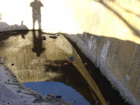 Rodríguez apunta que al lado de las fachadas principales de este inmueble histórico "nos encontramos con un boquete en el suelo de consideración y dimensión como un estanque o piscina de más de dos metros de profundidad y con accesibilidad absoluta para los viandantes".