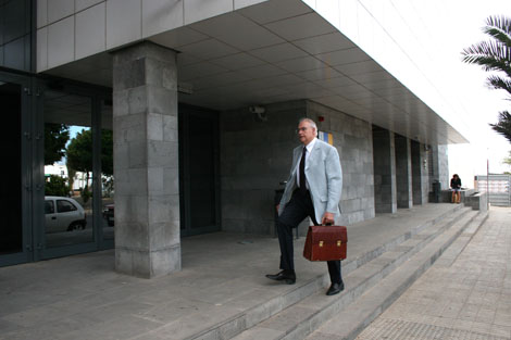 El abogado de José Francisco Reyes, Felipe Fernández Camero, entra en los juzgados de Arrecife.