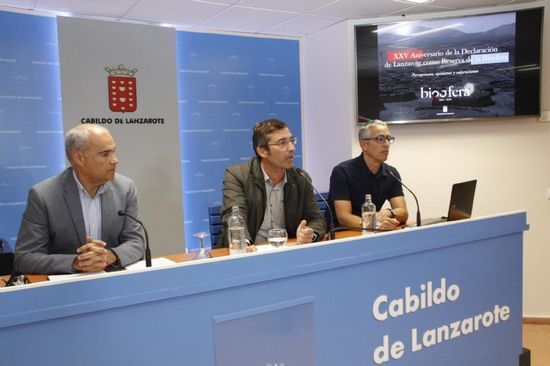 El presidente del Cabildo, Pedro San Ginés, durante la presentación de los resultados de esta encuesta, elaborada por el Centro de Datos de la Primera Corporación insular por encargo de la propia Reserva de la Biosfera, recordó este martes durante la presentación de dicha encuesta que “el 7 de octubre de 1993 fue la primera vez que en el ámbito español se declaraban dos islas completas Reservas de las Biosfera, como fue el caso de Lanzarote y de Menorca" y que con motivo de esta concesión, ambas administraciones sellaron el pasado año un acuerdo por el que se desarrollaría durante este 2018 una programación y actividades especiales para conmemorar estos 25 años.