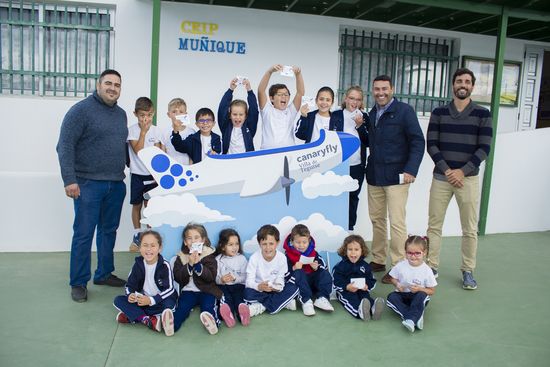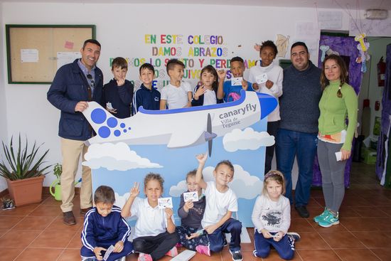 El alcalde de Teguise, Oswaldo Betancort, visitó este lunes por la mañana los colegios de Tiagua y Muñique, que junto al resto de centros de Educación de Infantil y Primaria del municipio, han participado en esta acción conjunta de la compañía Canaryfly y el Ayuntamiento de Teguise.