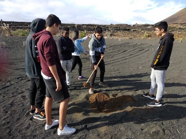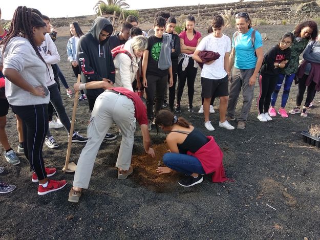 El local de Máguez continúa con el programa de actividades educativas medioambientales. En esta ocasión han acogido a los alumnos y alumnas del instituto de secundaria de Arrecife, los cuales han realizado una plantación de árboles en la Finca Los Lajares.