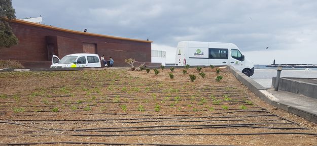 - Ejecución de nuevas plantaciones, con especies arbustivas, herbáceas, además de los tapizantes suculentos xerófitos como distintas variedades de Lamprathus sp. Aptemia cordifolia, Carpobrotus edulis, Gazania nivea, etc.