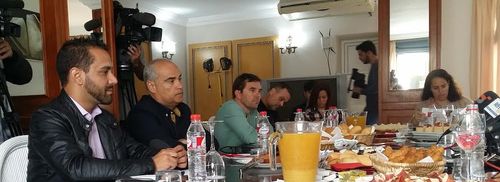 El alcalde de Arrecife, José Montelongo, el concejal de Hacienda, Samuel Martín, el primer teniente de alcalde y edil de Turismo y Cultura, Rafael Juan González, y el concejal de Festejos y Participación Ciudadana, Zebensui Rodríguez, mantuvieron este encuentro con los medios para presentar el borrador de los presupuestos municipales para el año 2016, cita a la que también debía acudir la segunda teniente de alcalde y concejal del PIL, Isabel Mesa, ausente finalmente al encontrarse indispuesta.