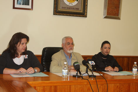 El alcalde, Marcial Martín, la concejal de Educación, María Dolores Corujo, y la primera teniente de alcalde, Conchi Álvarez, exigieron el pasado lunes transparencia al Gobierno canario en la construcción del colegio.