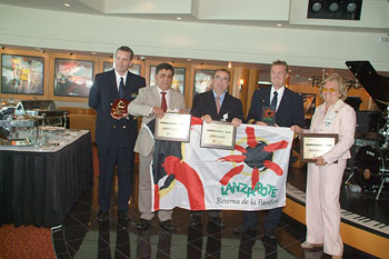 Ya en el interior del buque, en la planta catorce, Docal le dio las gracias al segundo capitán del buque, Henrik Christensen, por elegir Lanzarote y le transmitió su deseo de que no fuera esta la única vez que recalaran aquí.