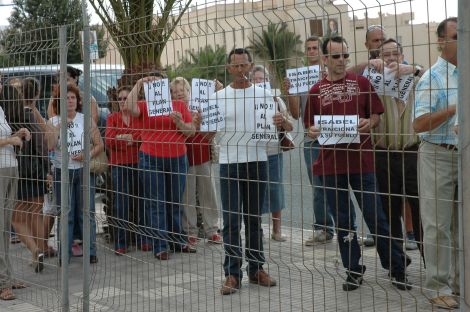 Los vecinos de Morro Angelito, que el pasado sábado llevaron a cabo una jornada de reivindicaciones en el Ayuntamiento de Arrecife, también visitaron este lunes las instalaciones deportivas de Arrecife.