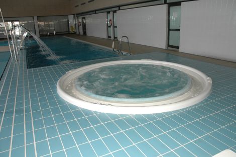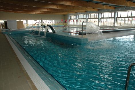 Una de las piscinas está cubierta y climatizada con dos vasos, uno de 364,6 metros cuadrados de natación con una profundidad que oscila entre los 1,30 y 1,50 metros y la siguiente piscina sirve para enseñanza, recreación y terapia de 107, 32 metros cuadrados y con una profundidad que oscila entre los 1,00 y 1,30 metros. Esto da una superficie de lámina de agua de competición de 510,44 metros cúbicos y de la piscina polivalente de 123, 42 metros cúbicos, lo que hace un total de lámina de agua de 633,86 metros cúbicos.