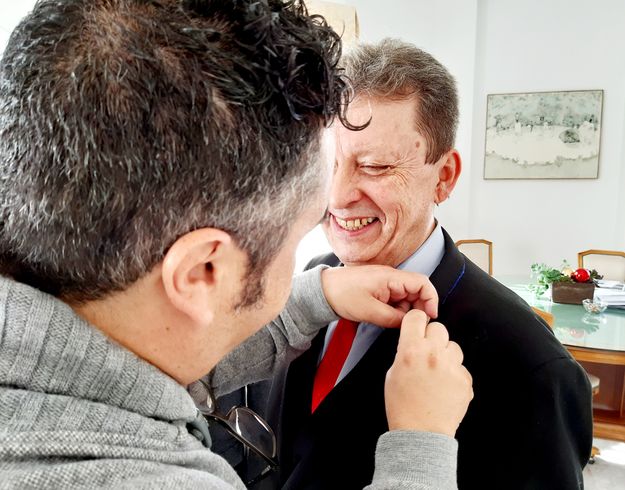 En la mañana de este jueves, José Peñín y Sergio Sachanovsky fueron recibidos en la sede de la alcaldía por la alcaldesa capitalina, Astrid Pérez, y por el segundo teniente de alcalde y concejal de Turismo, Comercio y Hostelería, Armando Santana. La primera edil impuso la insignia de Arrecife a este destacado prescriptor de los vinos en el mundo de la lengua hispana. José Peñín desde hoy se ha convertido en el primer ‘embajador’ de ‘Arrecife, la capital de la Malvasía’, donde Lanzarote y su capital tienen el honor de ser el referente mundial de los afamados vinos con uva malvasía elaborados por las bodegas de Lanzarote.