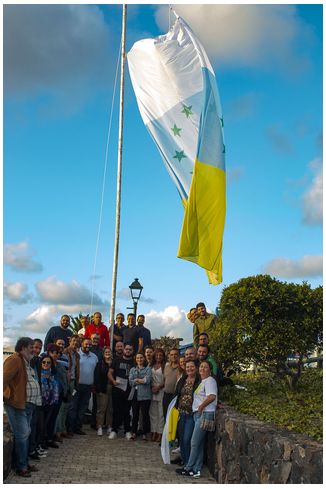 Tras el izado de la bandera, explica en nota de prensa posterior la organización nacionalista, se procedió a la lectura del manifiesto que corrió a cargo de los candidatos al Senado y al Congreso por las islas de Lanzarote y La Graciosa, Samuel Martín y Eduardo Díaz.