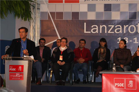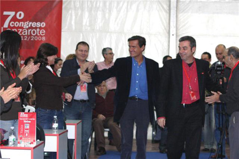 El secretario general del Partido Socialista Canario (PSC-PSOE) acudió este domingo a la clausura del VII Congreso Insular del partido celebrado este fin de semana en Lanzarote, y que ha proclamado a Carlos Espino nuevo secretario general insular. López Aguilar respaldó la gestión de los órganos insulares, arremetió contra el Gobierno de Canarias formado por CC y PP y pidió a sus compañeros esfuerzo y compromiso en los próximos cuatro años, de cara a que el Partido Socialista siga siendo la formación más votada en la Isla, y también en toda Canarias, de cara a la cita de las próximas elecciones regionales y locales de 2011.